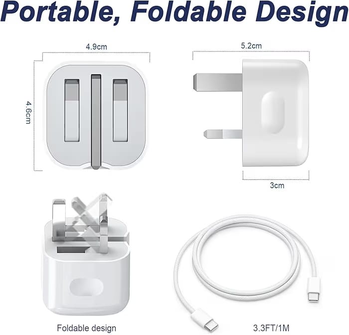 شاحن أصلي أورجينال ثلاثي بقوة 45W - 35W مصمم خصيصا لهواتف 17 Pro Max يوفر شحن سريع وآمن لجهازك مع حماية من الحرارة الزائدة والشحن المفرط ليضمن عمر أطول للبطارية