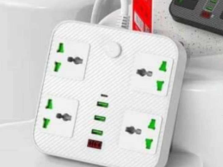 مشترك كهربائي متعدد الاستخدامات يحتوي على 4 مخارج كهربائية و3 منافذ يو اس بي ومنفذ تايب سي بقوة 3000 وات مثالي للاستخدام المنزلي والمكتبي يوفر حماية ضد ارتفاع التيار الكهربائي