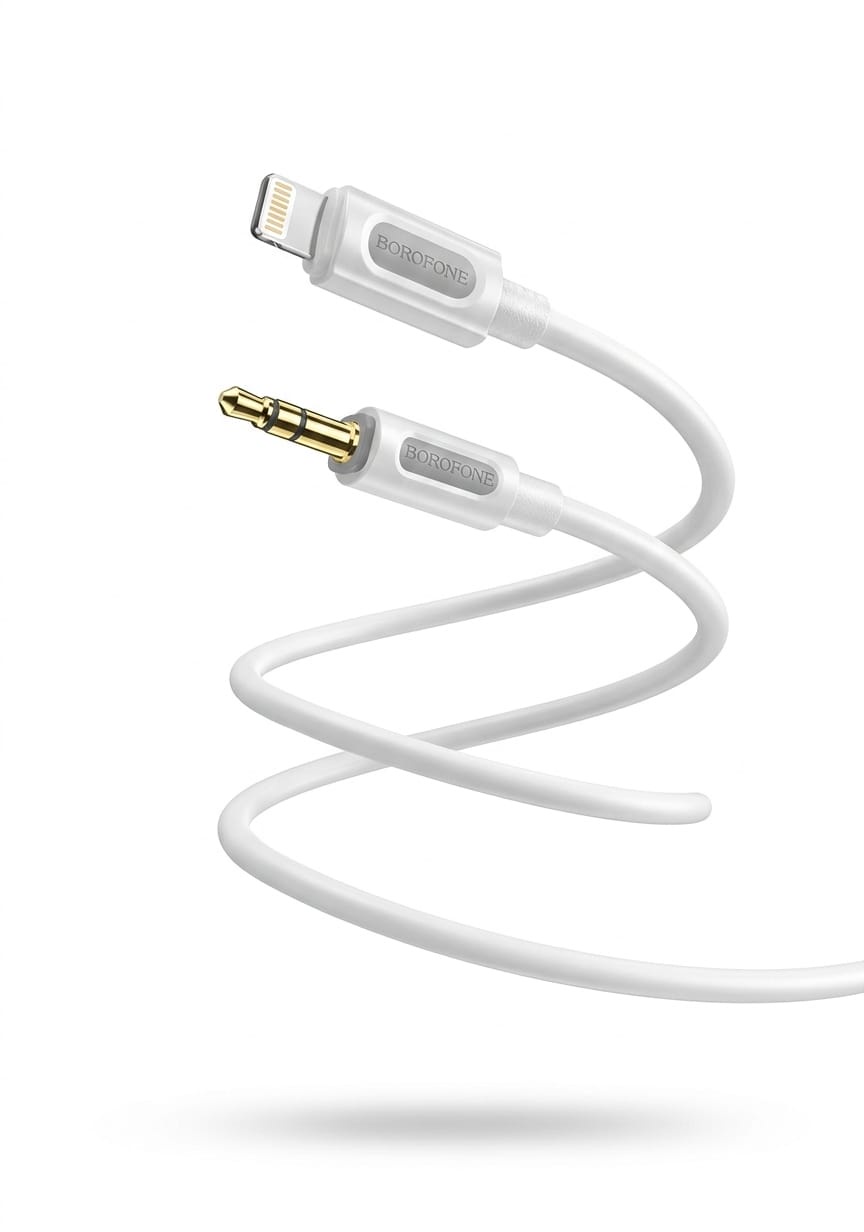 محول AUX X آيفون لايتينج BOROFONE BL20 SILICONE من بوروفون مصنوع من السيليكون عالي الجودة لنقل الصوت بوضوح تام مع متانة فائقة ومقاومة للتلف والتآكل منتج أصلي مميز يناسب جميع أجهزة آيفون