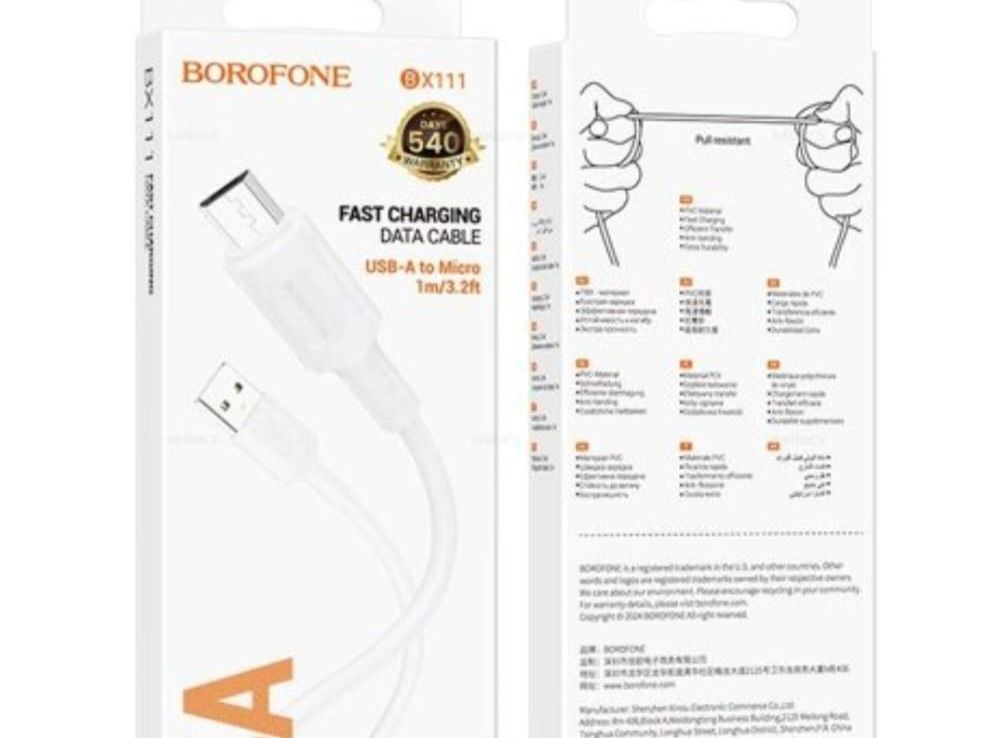 كابل شحن وبيانات ميكرو BX111 من BOROFONE لميكرو MICRO سريع جدا - أبيض يوفر نقل فعال للبيانات مصنوع من البولي فينيل كلورايد بمتانة إضافية صعب القطع ذو متانة عالية منتج مميز
