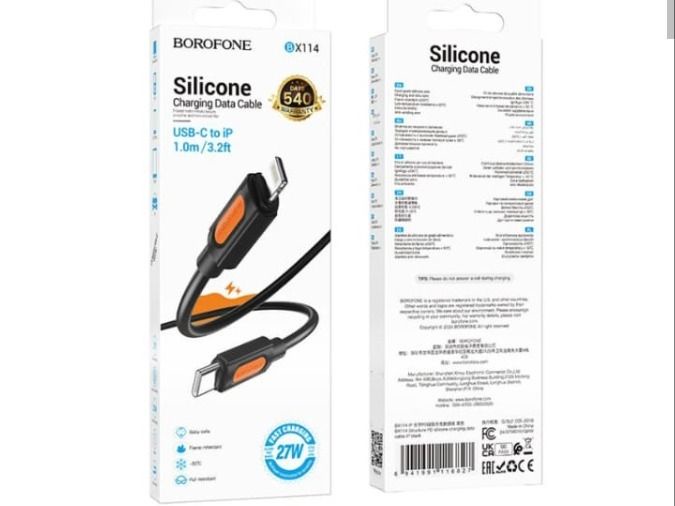 كابل بيانات شحن سريع من النوع C إلى lighting من Borofone BX114 BOROFONE PD27 وات، الطول: 1 متر (أسود