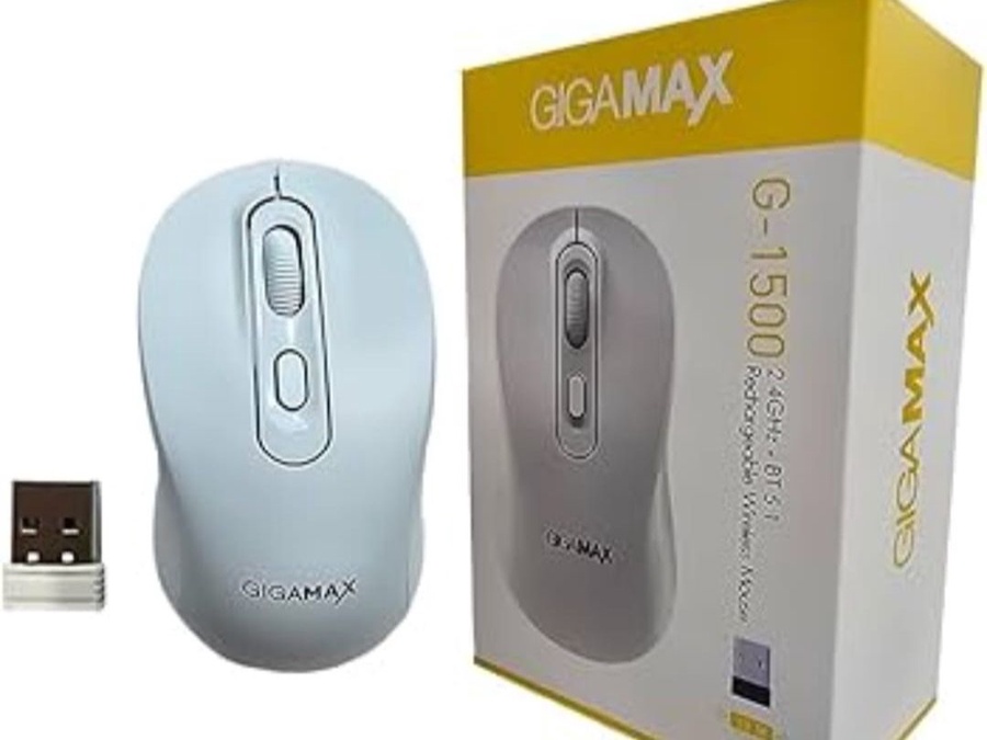 ماوس وايرلس جيجا ماكس جي 1500 قابل للشحن تي سي يعمل بتقنية البلوتوث بتردد 2.4 جيجا هرتز متوافق مع سامسونج جالكسي تاب وأجهزة اللابتوب والكمبيوتر وماك والتابلت وأندرويد مع إضاءة آر جي بي