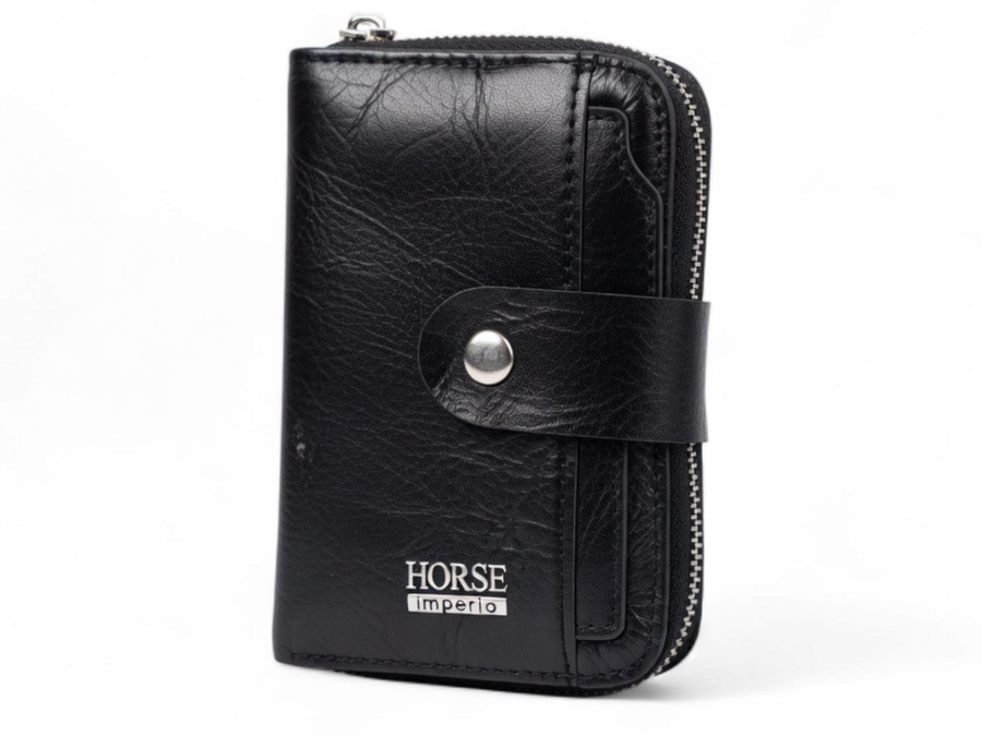 محفظة جلد بسوستة لحمل البطاقات بحجم صغير وسعة 11 بطاقة للرجال