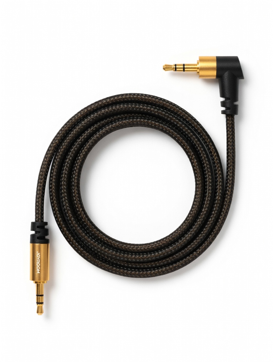 كابل AUX عالي الجودة من Joyroom بطول متر واحد موصل 3.5mm يوفر اتصالاً موثوقاً وواضحاً لنقل الصوت بين الأجهزة المختلفة متوافق مع جميع الهواتف الذكية والأجهزة اللوحية والمشغلات الموسيقية