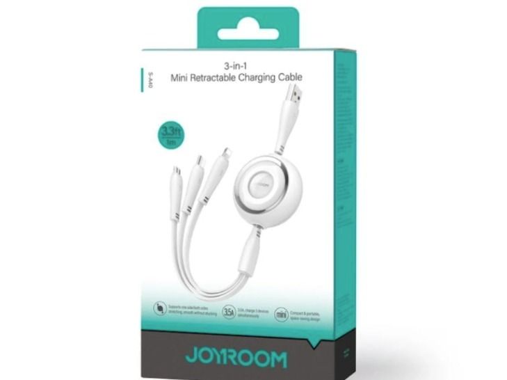 كابل شحن صغير 3 في 1 قابل للسحب 3.5 امبير من جوي روم S-A40 بطول 1 متر، ابيض، لمحول الشحن، يو اس بي صغير