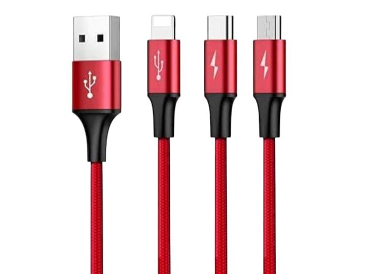 كابل شحن سريع متعدد 3 في 1 من KIRLLO مضفر متعدد الاستخدامات ، للشحن السريع بمنفذ نوع C ومايكرو USB ومنفذ ايفون لشحن الموبايلات والمزيد، 1.2 متر لجميع انواع الموبايل والكمبيوتر