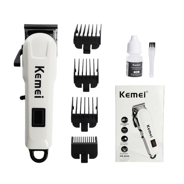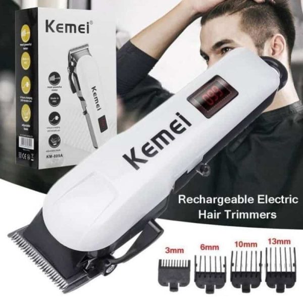 اكينة حلاقة الشعر الاحترافية Kemei KM-809A تتميز بمحرك قوي وشفرة قابلة للتعديل يمكن استخدامها سلكيًا أو لاسلكيًا مدة الشحن 4 ساعات وتوفر 240 دقيقة من الاستخدام