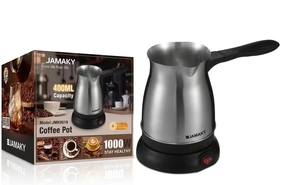 غلاية قهوة كاتيل موديل 9019 بقاعدة من الستانلس ستيل المتين توفر تسخيناً سريعاً وآمناً لقهوتك المفضلة بتصميم عصري وأداء موثوق