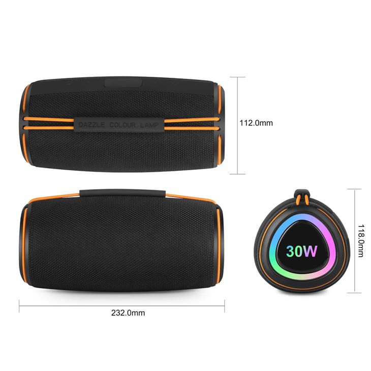 مكبر صوت قوي بقدرة 30 واط مع تقنية بلوتوث متقدمة وخيارات اتصال متعددة عبر AUX و USB و TF بطارية تدوم طويلاً بسعة 4000 مللي أمبير مقاوم للماء وإضاءة RGB ملونة تفاعلية