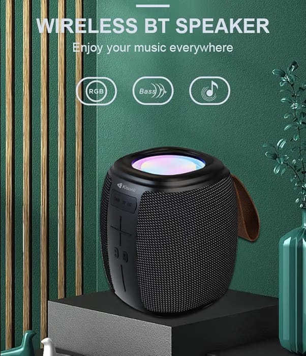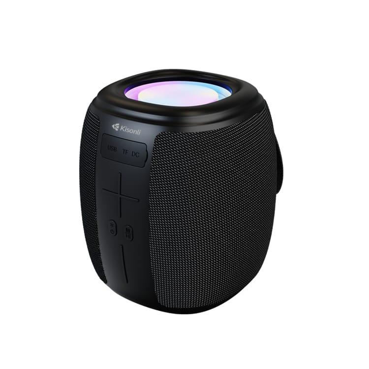 مكبر صوت بلوتوث Kisonli Q16 بقوة 5 واط يتميز بتقنية الاتصال اللاسلكي وخيارات الاتصال المتعددة عبر AUX و TF و USB مزود ببطارية 1200 مللي أمبير قابلة للشحن ومقاوم للماء مع إضاءة RGB ملونة