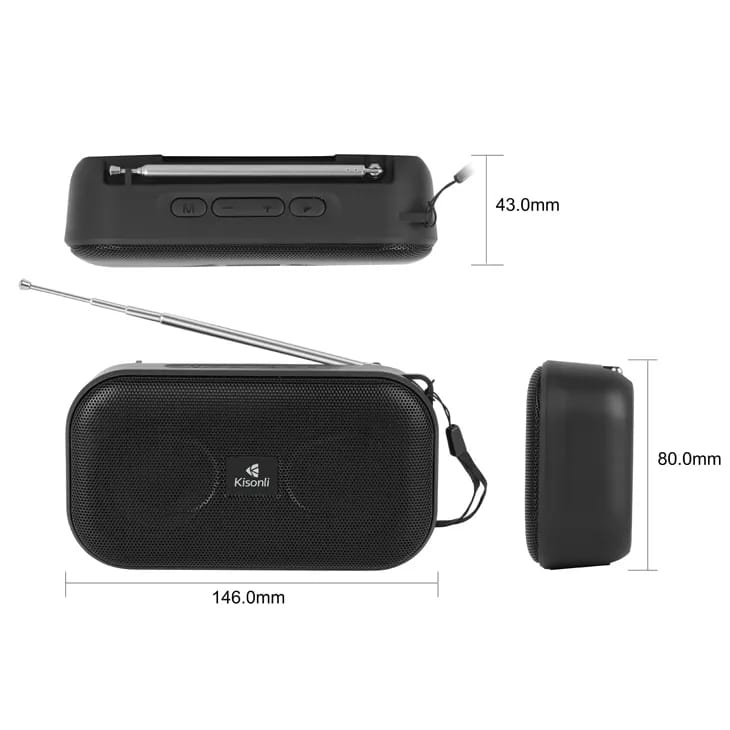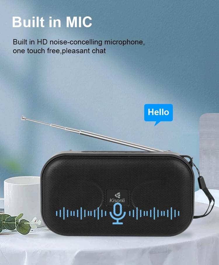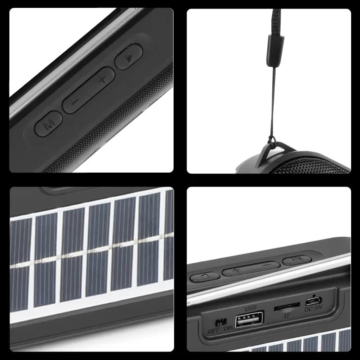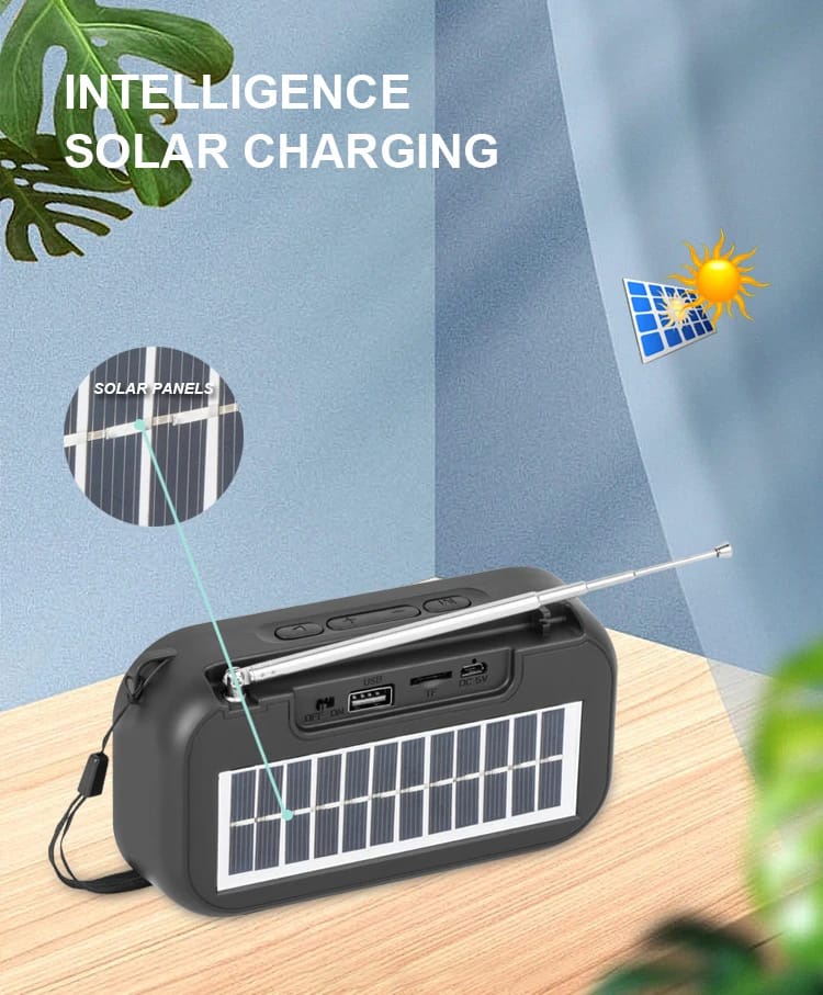 مكبر صوت Kisonli SC01 بقوة 5 واط متعدد الاتصالات بتقنية البلوتوث وAUX وUSB وبطاقة TF ببطارية 1200 مللي أمبير قابلة للشحن بالطاقة الشمسية