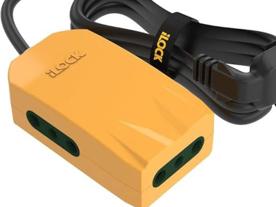 مشترك كهربائي مع لمبة بيان بإضاءة هادئة يحتوي على ٣ مخارج بقوة ١٠ أمبير مزود بحزام فيلكرو لسهولة التعليق ولاصق خلفي دبل فيس وفيشة زاوية صغير الحجم لتوفير المساحة