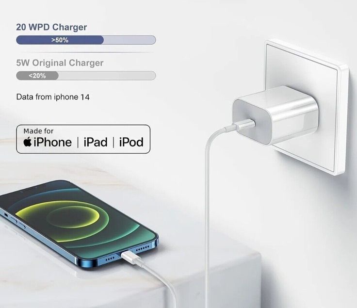 رأس شحن أصلي عالي الجودة لأجهزة ايفون بقوة 20 وات مع منفذ USB-C للشحن السريع والفعال