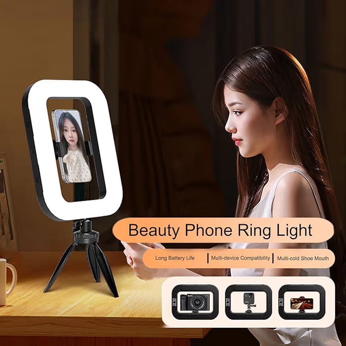 رينج لايت مستطيل NeePho موديل NP 35 مصمم لهاتفين يوفر إضاءة احترافية متساوية وناعمة مثالي للتصوير الفوتوغرافي والفيديو بجودة عالية