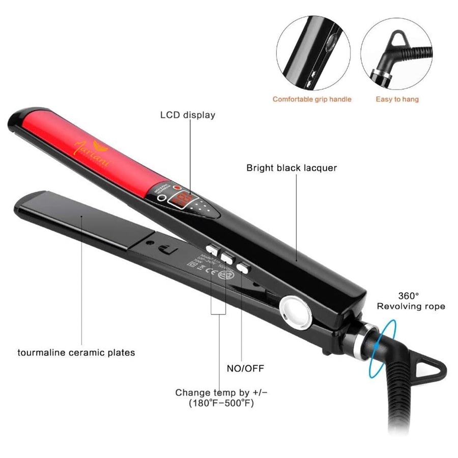 إنها مكواة فرد شعر رقمية مع شاشة LED تعرض درجة الحرارة، مما يسمح لك بضبط درجة الحرارة المطلوبة لشعرك.