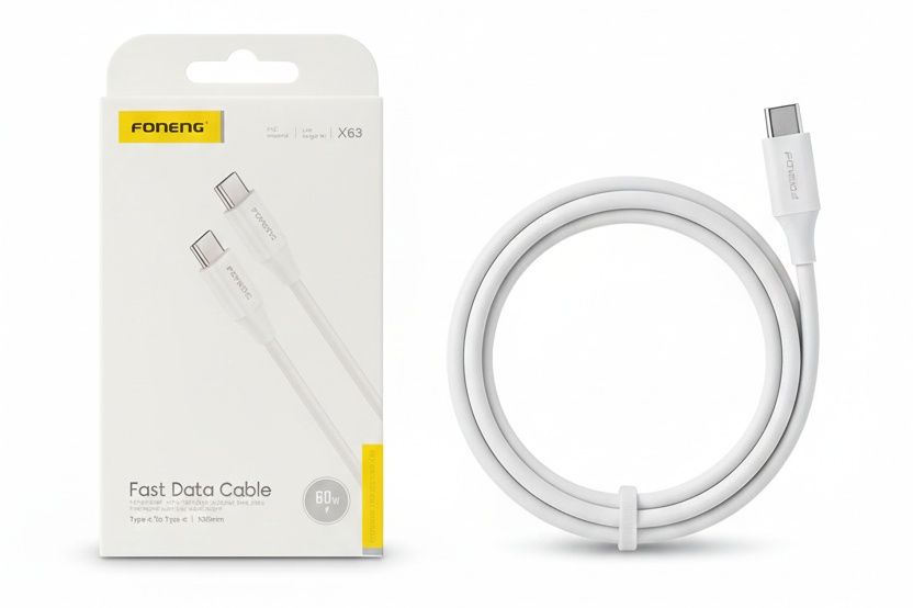 كابل شحن فونينج X63 تايب سي إلى تايب سي أصلي عالي الجودة، يتميز بسرعة نقل البيانات الفائقة وقدرة شحن سريعة. مصنوع من مواد متينة تضمن طول العمر الافتراضي ومقاومة التلف، مثالي للاستخدام اليومي مع جميع أجهزة تايب سي.