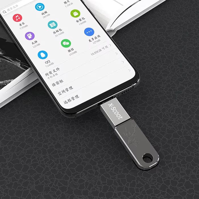 محول USB X OTG من نوع X-SCOOT XS-501 متوافق مع جميع الهواتف الذكية والأجهزة الإلكترونية منتج أصلي عالي الجودة يتيح نقل البيانات بسرعة وسهولة بين الأجهزة المختلفة