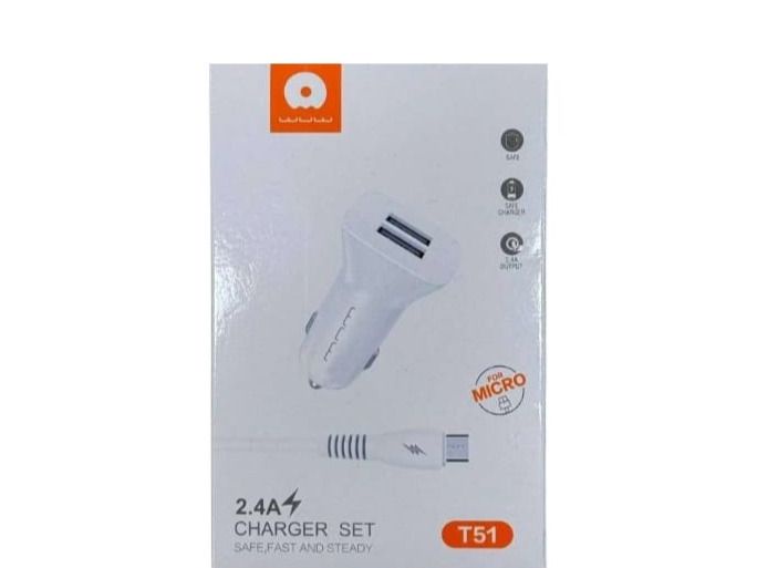 شاحن سيارة أيفون WUW مخرجين 2USB. مع كابل أيفون 2.4A