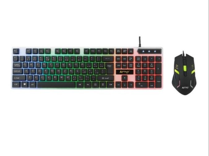 كومبو كيبورد وماوس سلكي من AITTNT موديل x200 بتصميم مريح ومقاوم للماء يتميز بإضاءة RGB جذابة متوافق مع جميع أنظمة التشغيل باللون الأسود الأنيق مثالي للاستخدام اليومي والألعاب