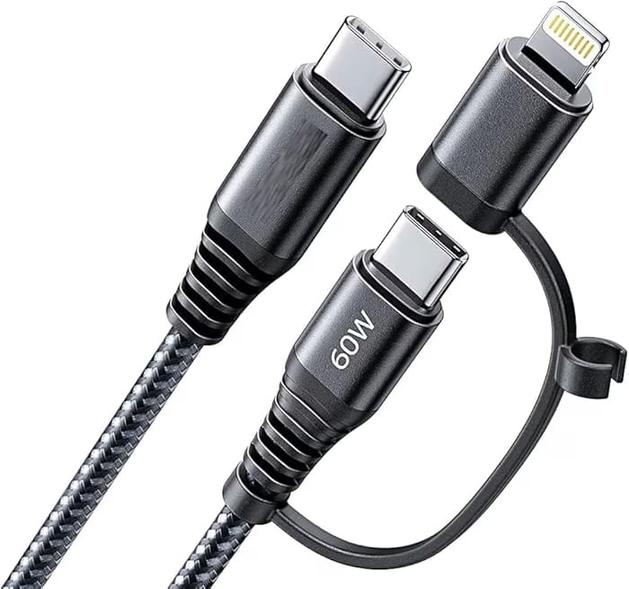 وكابل 3 فى 1 . 60 وات ( ايفون . تايب سي . Pd )