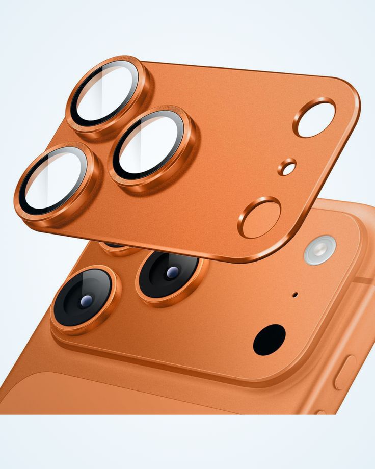 ginal Orange Metal color camera lens protector specially designed for iPhone 17 Pro Max, protecting the lenses from scratches and shocks while maintaining high image quality.